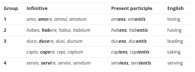 Present Participles in Latin